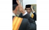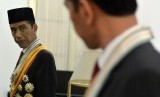 REPUBLIKA.CO.ID, JAKARTA -- Presiden Joko Widodo menjalani sesi pemotretan foto resmi di Istana Merdeka, Jakarta, Kamis (23/10).