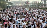 REPUBLIKA.CO.ID, JAKARTA -- Ribuan peserta berlari mengikuti perlombaan Jakarta Marathon yang dimulai dari kawasan Monumen Nasional, Jakarta, Ahad (26/10).