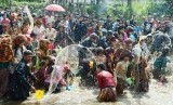 Warga saling siram di mata air Irung-Irung pada Cihideung Festival 2014 di Desa Cihideung, Kecamatan Parongpong, Kabupaten Bandung Barat, Ahad (26/10). (Republika/Edi Yusuf)