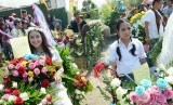 Merangkai bunga pada Cihideung Festival 2014 di Desa Cihideung, Kecamatan Parongpong, Kabupaten Bandung Barat, Ahad (26/10). (Republika/Edi Yusuf)