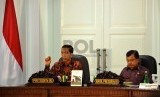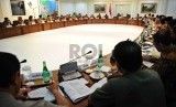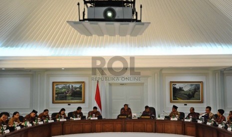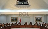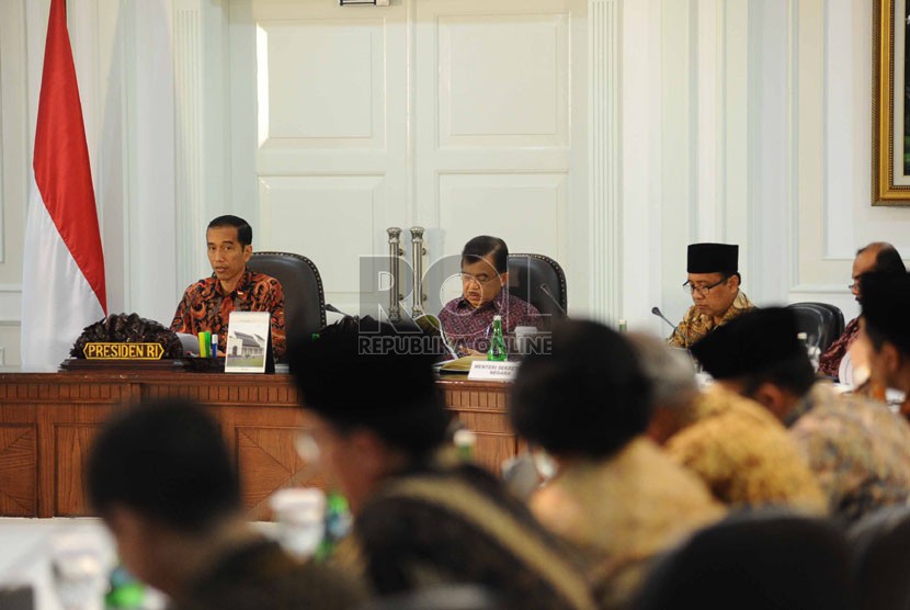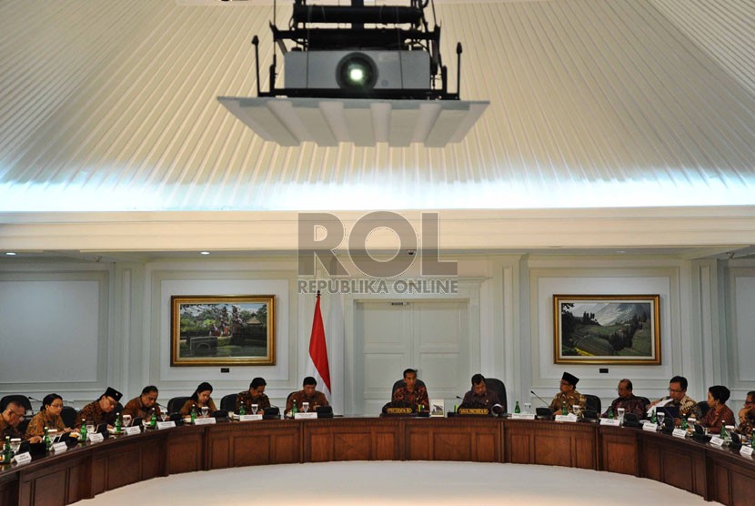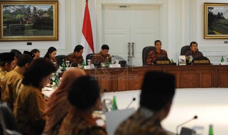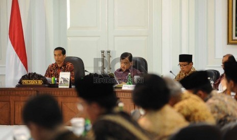 Presiden Joko Widodo menggelar rapat perdana Kabinet Kerja di Istana Negara, Jakarta, Senin (27/10). (Republika/Tahta Aidilla)
