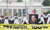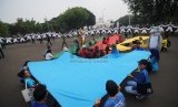 Sejumlah aktivis lingkungan melakukan aksi damai 100% Indonesia Hijau Damai di depan Istana Negara, Jakarta Pusat, Senin (27/10). (Republika/Raisan Al Farisi)