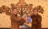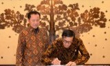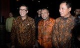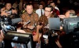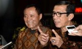 REPUBLIKA.CO.ID, JAKARTA -- Mantan Menkumham Amir Syamsudin melakukan serah terima jabatan kepada Menkumham Yasonna Hamonangan Laoly di Kantor Menkumham, Jakarta, Senin (27/10).