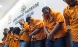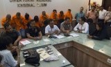 REPUBLIKA.CO.ID, JAKARTA -- Sejumlah tersangka kasus pencurian di rumah tinggal di kawasan Jakarta Utara dan Jakarta Timur berbaris di Direktorat Reserse Kriminal Umum Polda Metro Jaya di Jakarta, Selasa (28/10).