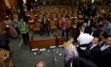 REPUBLIKA.CO.ID, JAKARTA -- Rapat paripurna Dewan Perwakilan Rakyat terkait pengesahan alat kelengkapan dewan (AKD) di Gedung Nusantara II, DPR, Jakarta, Selasa (28/10), berakhir ricuh akibat konflik internal di tubuh PPP.