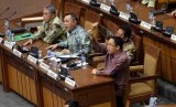 Politisi PPP Hasrul Azwar membalikkan meja saat memprotes pengajuan susunan nama anggota komisi dan AKD dari PPP.