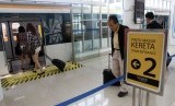 REPUBLIKA.CO.ID, MEDAN -- Penumpang kereta bandara bersiap naik ke gerbong menuju Bandara Kualanamu di Stasiun Kereta Api Besar, Medan, Sumut, Jumat (31/10).