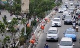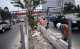 REPUBLIKA.CO.ID, DEPOK -- Pekerja menyelesaikan pembuatan pelebaran taman separator di Jalan Margonda Raya, Depok, Jawa Barat, Jum'at (31/10).