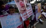 REPUBLIKA.CO.ID, JAKARTA -- Sejumlah anak membentangkan poster Aku Ingin Dilindungi saat aksi menentang kekerasan kepada anak di Jakarta, Ahad (2/11).