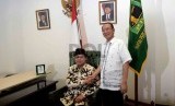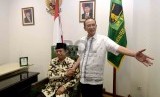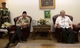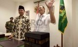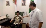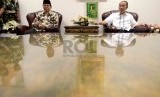 REPUBLIKA.CO.ID, JAKARTA -- Mantan Ketua umum Partai Persatuan Pembangunan (PPP), Suryadharma Ali (kanan) menyambut kedatangan Ketua umum PPP terpilih, Djan Faridz (kiri) di Kantor Pusat PPP, Jakarta, Ahad (2/11).