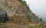 REPUBLIKA.CO.ID, ACEH BESAR -- Kendaraan berusaha melintasi salah satu titik longsor di lintasan jalan negara, Desa Leupung, Kecamatan Leupung, Kabupaten Aceh Besar, Aceh, Ahad (2/11).