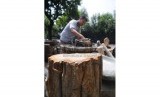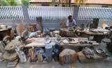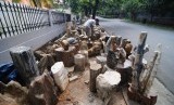 REPUBLIKA.CO.ID, JAKARTA -- Pedagang fosil kayu, Wawan (31) menjajakan dagangannya di kawasan Kemang Dalam, Jakarta Selatan, Senin (3/11).