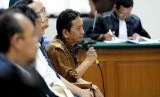 Mantan Kadishub DKI Jakarta Udar Pristono menjadi saksi dalam sidang lanjutan sidang perkara dugaan korupsi proyek pengadaan bus TransJakarta di Pengadilan Tipikor, Jakarta, Senin (3/11). ( Republika/Wihdan)