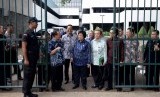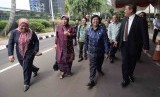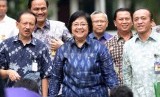 Menteri Lingkungan Hidup dan Kehutanan Siti Nurbaya berjalan kaki dari Gedung Kementrian Lingkungan Hidup dan Kehutanan menuju Gedung DPD di Komplek Parlemen, Senayan, Jakarta, Rabu (5/11). (Republika/Agung Supriyanto)