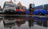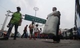 Suasana hilir mudik calon calon penumpang di depan Terminal Senen, Jakarta Pusat, Kamis (6/11). (Republika/Raisan Al Farisi)