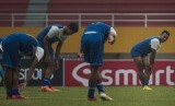 Para pesepakbola Persib Bandung berlatih menjelang final Liga Super Indonesia (LSI) 2014 di Stadion Gelora Sriwijaya Jakabaring, Palembang, Kamis (6/11). (Antara/Rosa Panggabean)