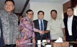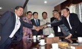Dua kubu di DPR, Koalisi Merah Putih (KMP) dan Koalisi Indonesia Hebat (KIH) sepakat berdamai dalam pertemuan di Kompleks Parlemen Senayan, Jakarta, Senin (10/11). (Republika/Agung Supriyanto)