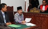 Terpidana 18 tahun Penjara Antasari Azhar (tengah) saat membacakan materi gugatan pada sidang perdana gugatan di Pengadilan Negeri Tangerang, Banten, Senin (10/11). (Antara/Muhammad Iqbal)