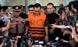 REPUBLIKA.CO.ID, JAKARTA -- Mantan Wakakorlantas Brigjen Didik Purnomo menggunakan rompi tahanan meninggalkan Gedung KPK, Jakarta, Selasa (11/11).