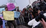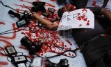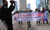 REPUBLIKA.CO.ID, JAKARTA -- Sejumlah insan pers yang tergabung dalam organisasi Pewarta Foto Indonesia (PFI) dan Poros Wartawan Jakarta (PWJ), melakukan aksi damai di Bundaran HI, Jakarta (14/11).