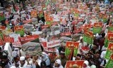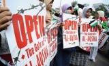 REPUBLIKA.CO.ID, JAKARTA -- Sekitar seribu lebih mssa yang tergabung dalam Komite Rakyat untuk Palestina (KNRP) melakukan aksi solidaritas mendesak Israel agar segera membuka akses bagi umat Islam untuk beribadah ke masjid Al Aqsa, dalam aksi unjuk rasa yang berlangsung di depan kedubes AS,Jakarta, Ahad (16/11).