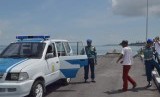 Salah seorang pemilik sabu-sabu asal Malaysia (kedua kiri) dan dua orang berada dalam mobil dalam pengawalan ketat prajurit TNI AL saat tiba di dermaga Pangkalan TNI AL Kabupaten Nunukan, Ahad (16/11). (Antara/M Rusman)