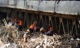 REPUBLIKA.CO.ID, JAKARTA -- Petugas kebersihan membersihkan sampah dan kayu yang berserakan akibat banjir di kawasan Sungai Ciliwung, Jakarta Selatan, Jumat (21/11).