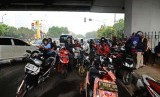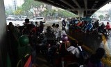 REPUBLIKA.CO.ID, JAKARTA -- Sejumlah pengendara motor berteduh menunggu hujan di kolong jalan layang Tendean, Jakarta Selatan, Kamis (27/11).