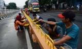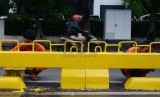 REPUBLIKA.CO.ID, JAKARTA -- Sejumlah pekerja mengecat separator jalur busway di Jalan Raya Mampang, Jakarta Selatan, Kamis (27/11).
