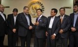 REPUBLIKA.CO.ID, JAKARTA -- Delegasi HAMAS dari Palestina yang dipimpin oleh Kepala Biro Politik Hamas Abu Umar Muhammad menyambangi pimpinan DPR RI, dan diterima langsung oleh Ketua DPR Setya Novanto didampingi Wakil Ketua DPR Fadli Zon dan Wakil Ketua DPR Fachri Hamzah di Kompleks Parlemen Senayan, Jakarta, Jumat (28/11).