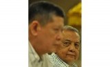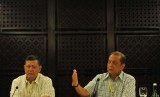 REPUBLIKA.CO.ID, NUSA DUA -- Calon Ketua Umum Partai Golkar, MS Hidayat menyapa wartawan sebelum menyampaikan pengunduran diri dari bursa caketum Golkar di Nusa Dua, Bali, Ahad (30/11).