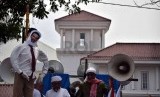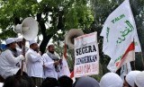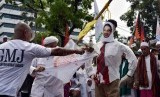 REPUBLIKA.CO.ID, JAKARTA -- Sejumlah ormas Islam yang tergabung dalam Gerakan Masyarakat Jakarta (GMJ) melakukan aksi damai menolak Basuki Tjahaja Purnama menjadi Gubernur DKI Jakarta di depan gedung Balaikota DKI Jakarta, Jakarta, Senin (1/12).