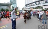 REPUBLIKA.CO.ID, JAKARTA -- Petugas Dinas Perhubungan DKI Jakarta melarang pengendara delman melintasi Kawasan Bundaran HI ketika pelaksanaan Car Free Day di Jakarta, Ahad (7/12).