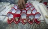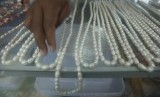 REPUBLIKA.CO.ID, LOMBOK BARAT -- Penjual menunjukkan perhiasan dari mutiara air tawar yang dijual di pinggir Pantai Sengigi, Batu Layar, Lombok Barat, NTB, Senin (8/12).