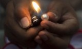 Penjual menunjukkan keaslian mutiara air laut dengan cara dibakar di pinggir Pantai Sengigi, Batu Layar, Lombok Barat, NTB, Senin (8/12). (Antara/Widodo S. Jusuf)