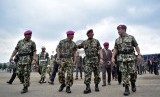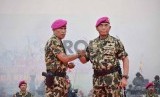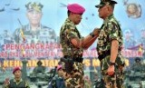 REPUBLIKA.CO.ID, JAKARTA -- Komandan Korps Marinir TNI AL Mayjen TNI (Mar) A Faridz Wasingthon memasangkan baret dan menyematkan brevet kehormatan trimedia kepada Menteri Pertahanan Ryamizard Ryacudu (kanan) di Lapangan Apel Kesatrian Marinir Cilandak, Jakarta Selatan, Selasa (9/12).