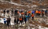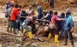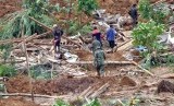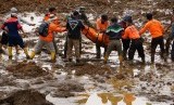 Sejumlah personel SAR dan TAGANA, mengevakuasi korban longsor di Dusun Jemblung, Desa Sampang, Kecamatan Karangkobar, Banjarnegara, Jateng, Sabtu (13/12). (Antara/Idhad Zakaria)