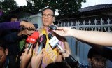 Ketua Dewan Pertimbangan Partai Golkar Akbar Tanjung menjawab pertanyaan pers usai melakukan kunjungan ke kediaman tokoh senior Golkar, B.J. Habibie di kawasan Patra Kuningan, Jakarta Selatan, Senin (15/12). (Republika/Agung Supriyanto)