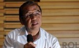 Wakil Ketua KPK Busyro Muqoddas berdialog dengan wartawan saat acara perpisahan Busyro di Gedung KPK, Jakarta, Selasa (16/12). (Republika/Agung Supriyanto)