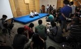 REPUBLIKA.CO.ID,JAKARTA -- Wakil Ketua KPK Busyro Muqoddas berdialog dengan wartawan saat acara perpisahan Busyro di Gedung KPK, Jakarta, Selasa (16/12).