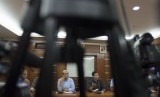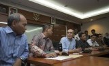 Ketua Tim Reformasi Tata Kelola Migas Faisal Basri (kedua kanan), memberi keterangan pers tentang pemanggilan petinggi Pertamina Energy Trading Ltd (Petral) di Kementerian ESDM, Jakarta, Rabu (17/12).(Antara/Rosa Panggabean)