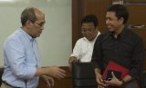 Ketua Tim Reformasi Tata Kelola Migas Faisal Basri (kiri) berjabat tangan dengan Vice President Corporate Communication Pertamina Ali Mundakir (kanan) di Kementerian ESDM, Jakarta, Rabu (17/12). (Antara/Rosa Panggabean)