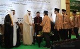 Wakil Rektor Univ Al Imam Muhammad bin Su'ud, Muhammad Said Al Alam (kedua kiri) bersama Menag Lukman Hakim Saifuddin saat memberikan sertifkat wisudawan LIPIA di Jakarta, Kamis (18/12). (Republika/ Tahta Aidilla) (FOTO : Republika/ Tahta Aidilla)