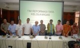 REPUBLIKA.CO.ID, JAKARTA -- Ketua Tim Reformasi Tata Kelola Migas Faisal Basri menyampaikan keterangan pers mengenai komposisi sumber BBM di Indonesia di Kementrian ESDM, Jakarta, Ahad (21/12).