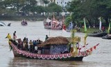 REPUBLIKA.CO.ID, BANDA ACEH -- Sejumlah perahu hias mengikuti pawai di Sungai Krueng Aceh, Banda Aceh, Ahad (21/12).