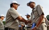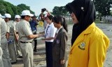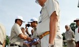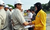 Dirut PT Pupuk Sriwidjaja (Pusri) Musthofa memberikan penghargaan kepada karyawan BUMN pupuk tersebut, pada peringatan Hari Ulang Tahun (HUT) ke-55 PT Pusri, di lapangan komplek PT Pusri, Palembang Rabu (24/12).(Republika/Maspriel Aries)