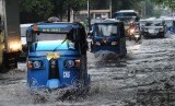 Gorong-gorong yang belum lama telah dibersihkan, masih belum mampu menampung debit air saat hujan deras.