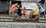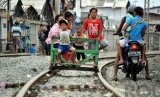REPUBLIKA.CO.ID, JAKARTA -- Sebuah ojek lori mengangkut warga di kawasan Pademangan, Jakarta Utara, Ahad (28/12).