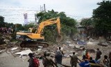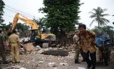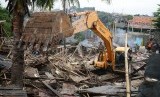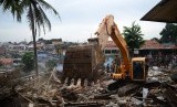 Penertiban bangunan liar di bantaran rel kereta api Kawasan Pasar Minggu, Jakarta Selatan, Selasa (30/12). (Republika/Raisan Al Farisi)