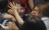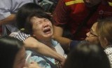 REPUBLIKA.CO.ID,SURABAYA -- Keluarga korban penumpang pesawat AirAsia QZ 8501, menangis histeris usai mendengar pernyataan dari Basarnas terkait ditemukannya serpihan pesawat dan jasad penumpang di perairan Selat Karimata.